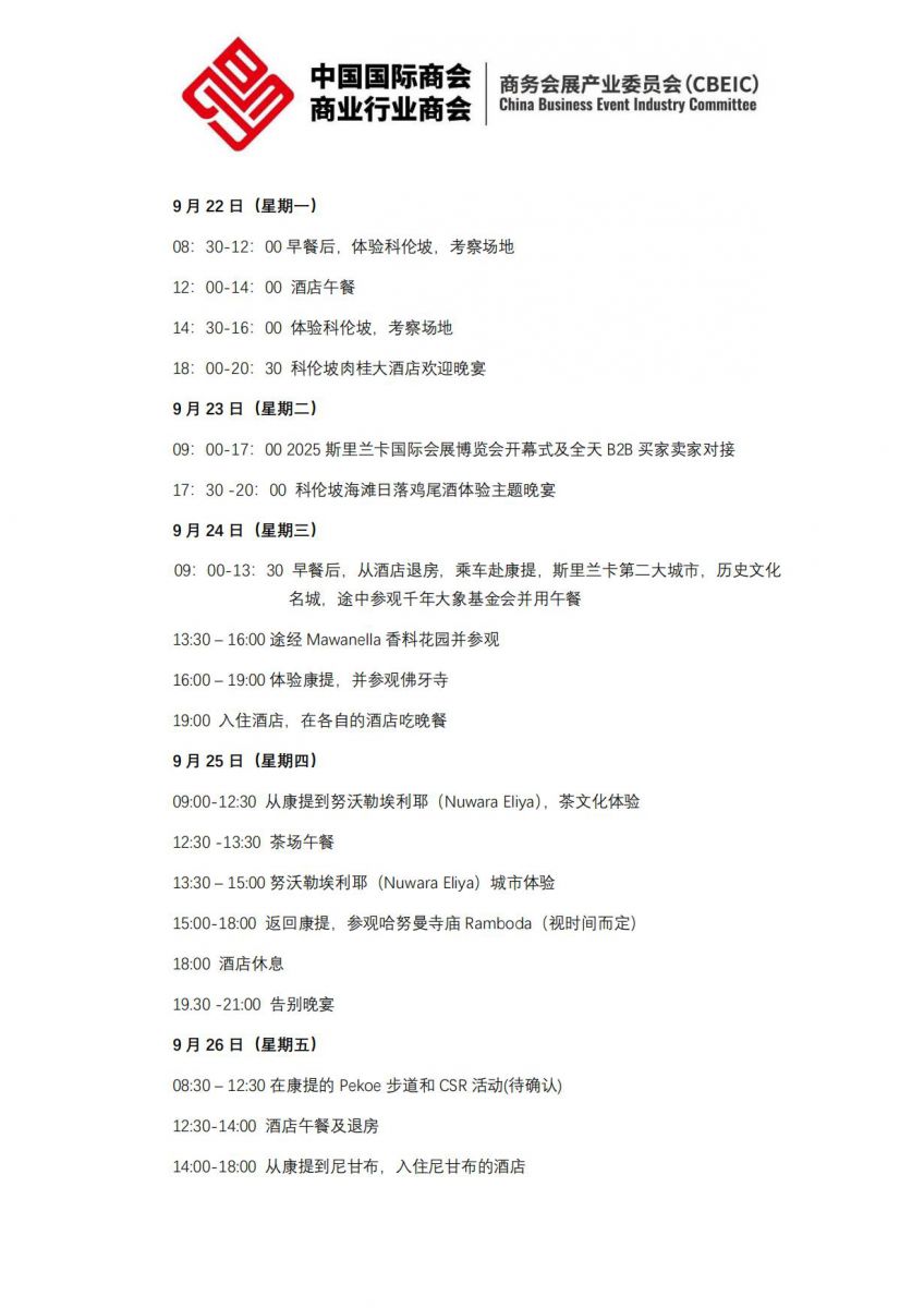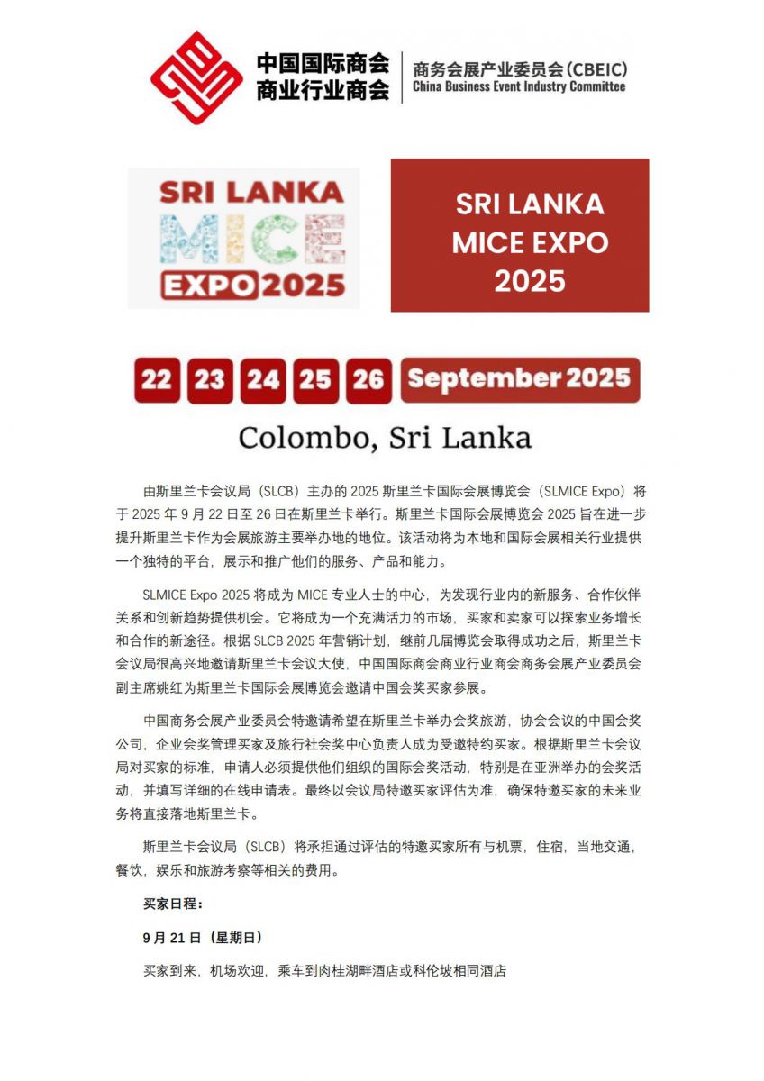 2025 斯里兰卡国际会展博览会开幕式及全天 B2B 买家卖家对接