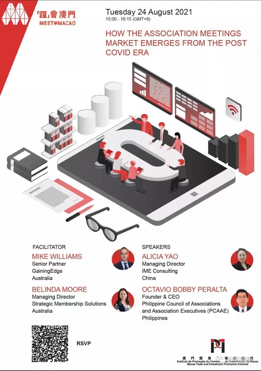 澳门贸易投资贸促局于8月24日14:30 – 16:30举办会展线上培训,讨论“后疫情时代如何重启协会会议市场”。 博悦咨询(北京)有限公司总经理姚红作为中国市场协会咨询专家受邀参加研讨会。