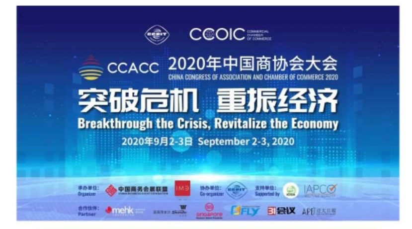 2020年中国商协会大会由中国国际贸易促进委员会商业行业委员会、中国国际商会商业行业商会主办,中国国际贸易促进委员会南京市分会、南京市国际商会、南京市人民政府会展业办公室协办,中国商务会展联盟,博悦咨询(北京)有限公司承办,国际大会及会议协会(ICCA)和国际专业会议组织者协会(IAPCO)支持,大会主题是“突破危机,重振经济”。