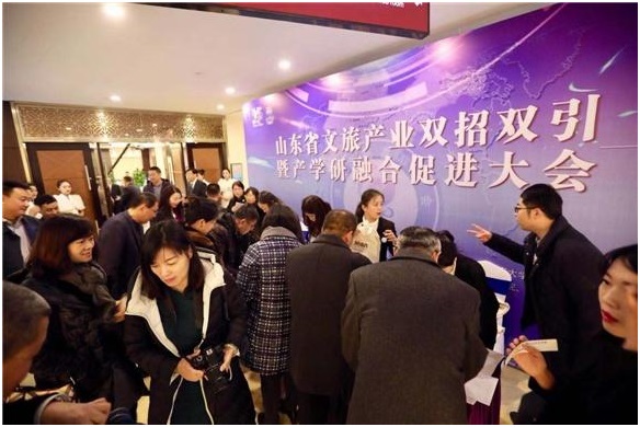 12月18日上午,山东省文旅产业双招双引暨产学研融合促进大会在济南召开,为落实省委省政府“双招双引”战略部署,深入推动文化旅游产学研融合发展,2018年初,山东省文化和旅游厅委托济南旅游发展委员会,以济南市为试点,依托重点高校、旅游企业、旅游智库,跨部门、跨区域、跨行业、跨学科打造产学研协同创新平台。