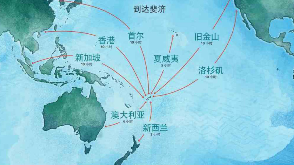 斐济航空公司可以通过香港提供方便的不间断的直达航班即可轻松抵达斐济。